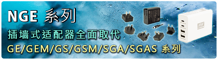 產品變更通知﹔NGE 系列插墻式適配器全面取代 GE / GEM / GS / GSM / SGA / SGAS 系列