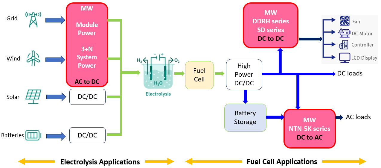 圖 1:氫能系統(tǒng)與明緯電源應用