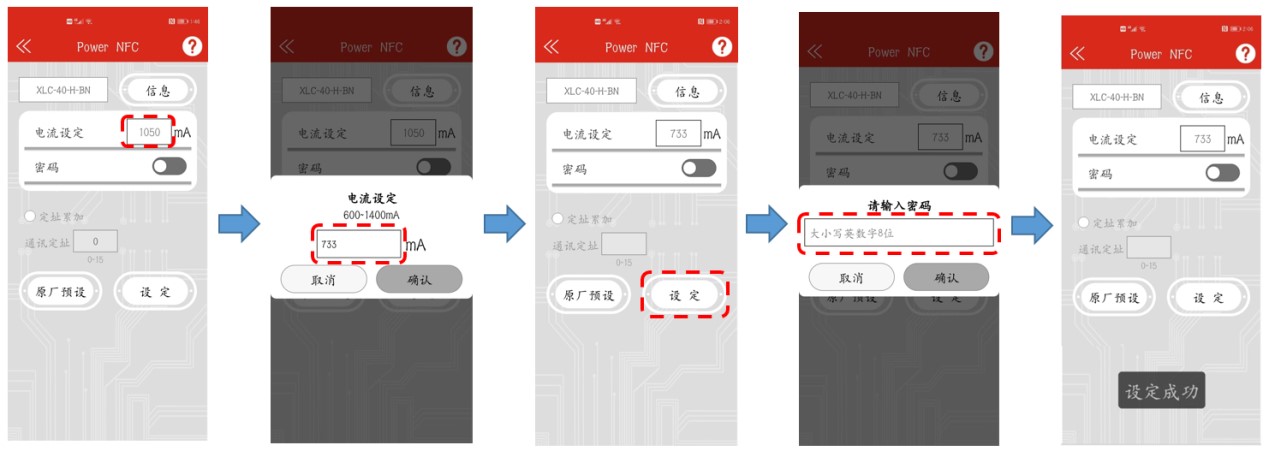 如下簡單說明如何透過 NFC 功能設(shè)定輸出電流: